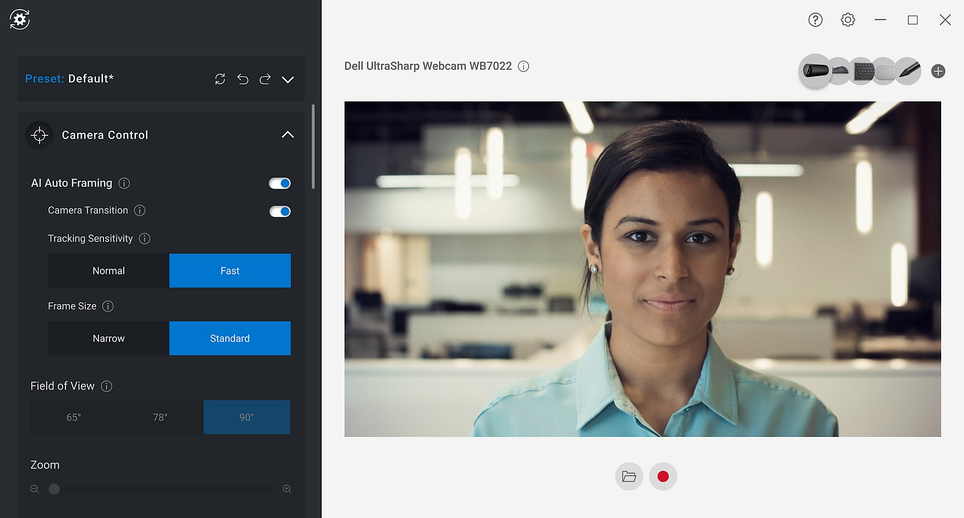 Dell Peripheral Manager software enables you to utilize advanced and intelligent features like HDR, AI Auto Framing, different Fields of View, Presets allowing you to easily customize settings based on your preferences. Look your best every time with Dell UltraSharp Webcam.
