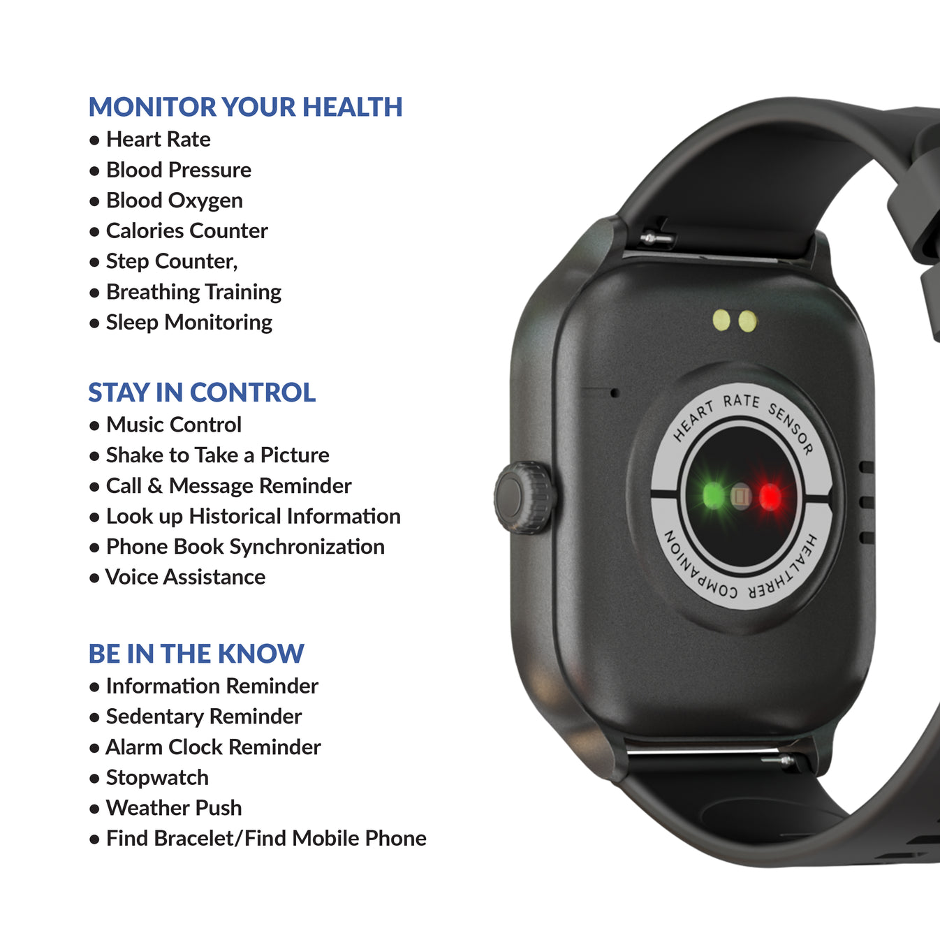 - Track your heart rate, blood pressure, blood oxygen levels, calories, steps, and sleep patterns effortlessly.