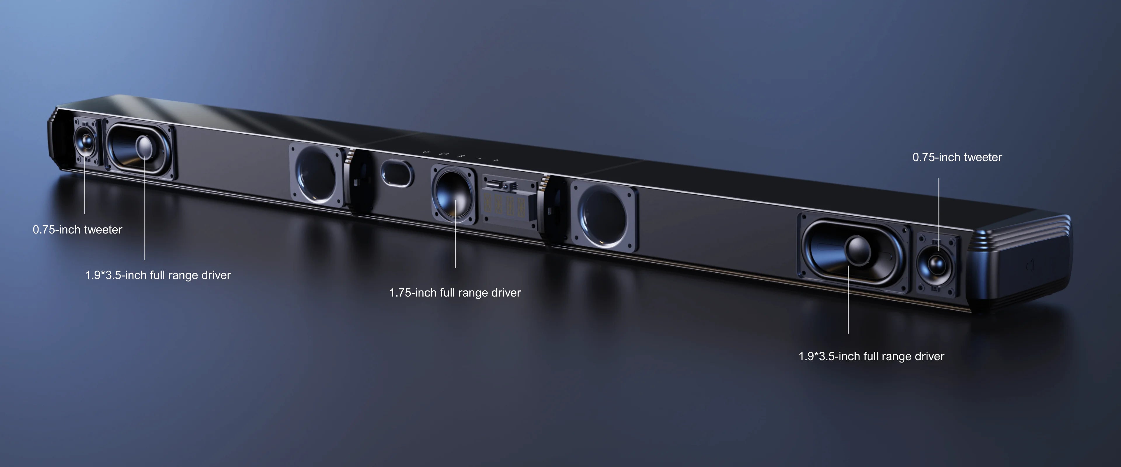 Experience 180W Peak Power/ and 100dB Sound Pressure with this amazing-sounding 5.0 Channel Speaker System. It features five powerful drivers with erospace-grade magnets and composite diaphragms for clear and sensitive audio performance.