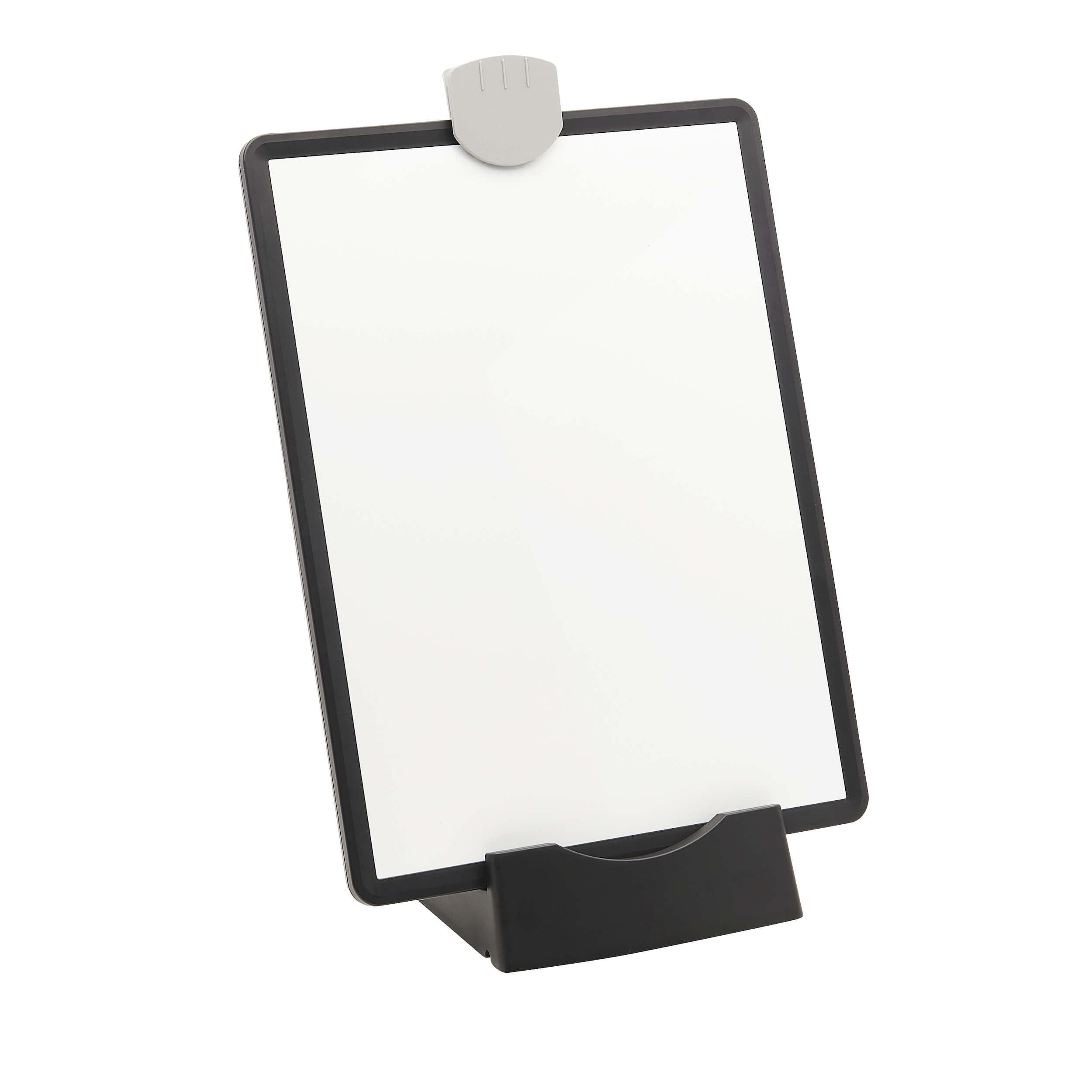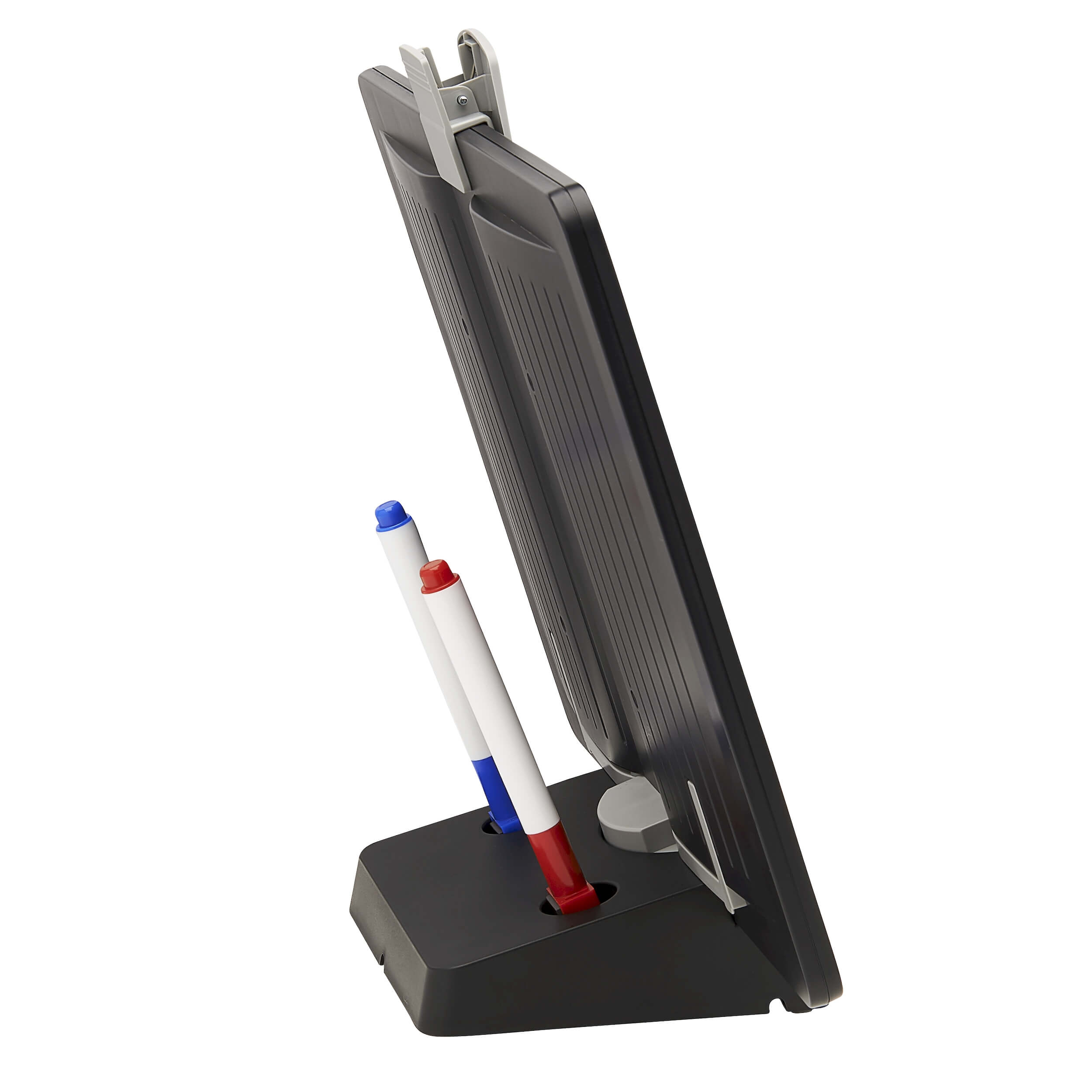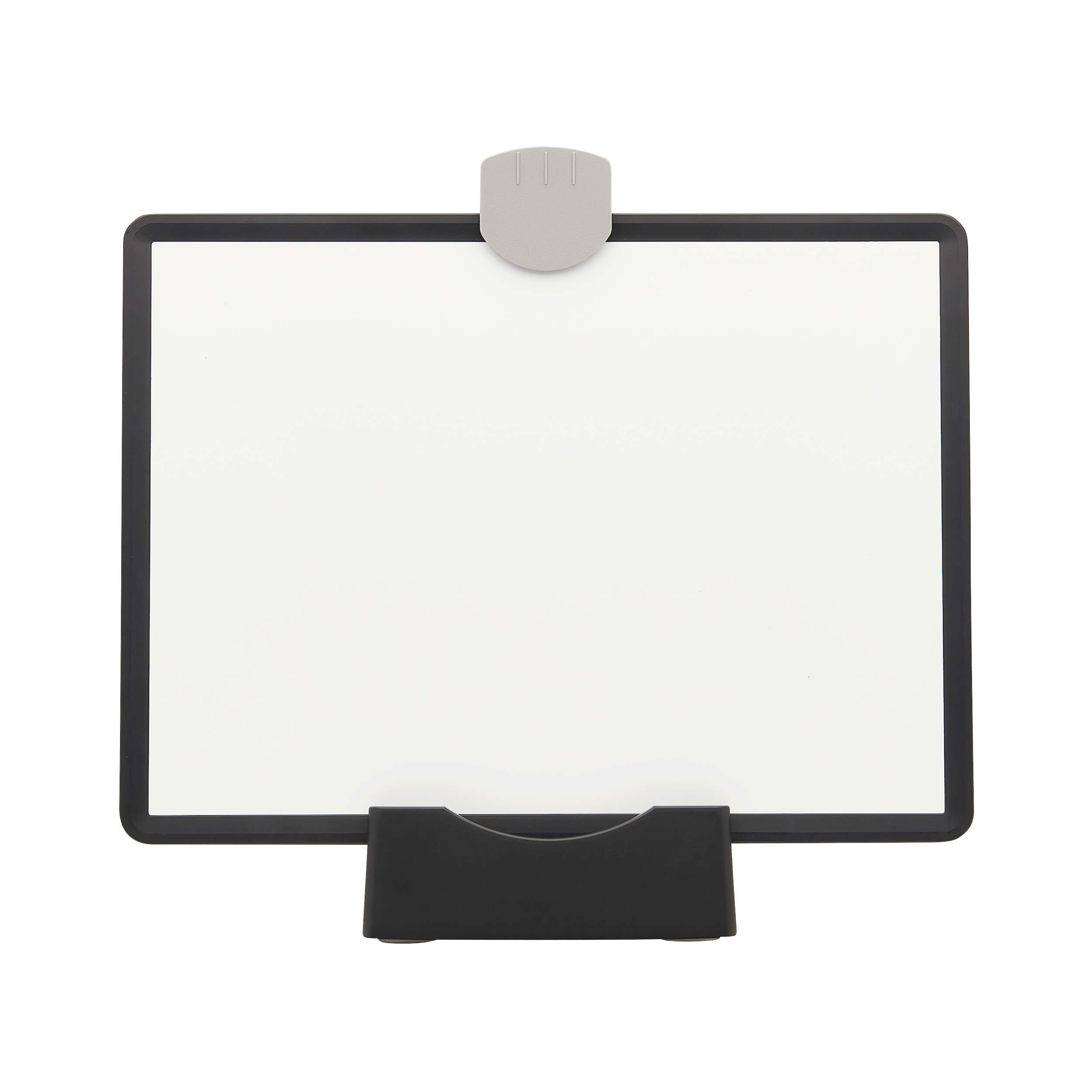 Ideal for taking quick notes, reminding you of upcoming tasks or sharing information at school or the office, this write-on/wipe-off whiteboard fits perfectly into any education or corporate setting. It comes with three markers (red, blue and black) for writing on the board’s 8.5 x 11.5-inch magnetic surface. The magnetic markers with erasers built into their caps secure to the whiteboard to prevent them from becoming lost. A removable document clips attaches notes to the board for easy reviewing.