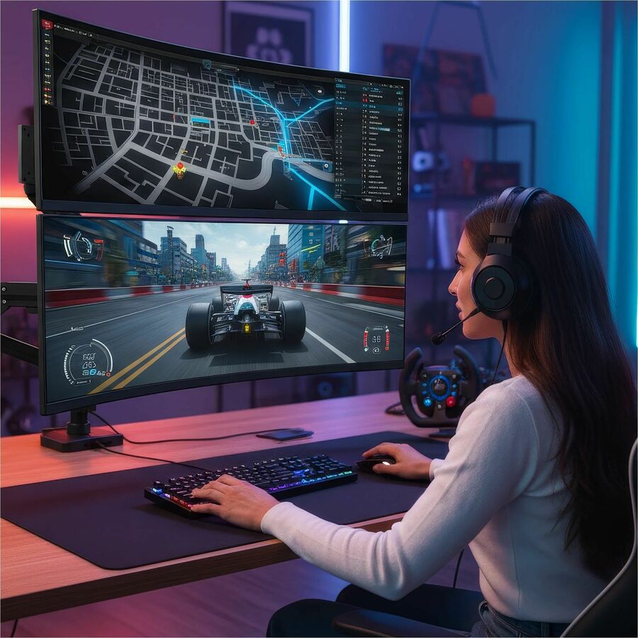 Stacked monitors maximize screen space while conserving valuable desk area, making it perfect for compact workstations. Optimized for large file viewing, this mount is ideal for CAD software, 3D modeling, financial analysis, and multi-application workflows. For gamers, the stacked ultrawide setup delivers a truly immersive experience, providing expanded peripheral vision in racing and flight simulators, better field of view in competitive games, and an ultimate multitasking hub for streamers. Crafted from high-strength steel and aluminum with a sleek matte black finish, the ProFlex stacking mount is built to last.