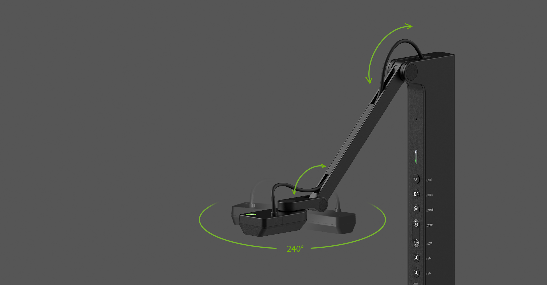 Easily adjust the VZ-R ULTRA to various heights, angles, and orientations using its swivel head and reinforced multi-jointed stand, providing flexibility for capturing materials.