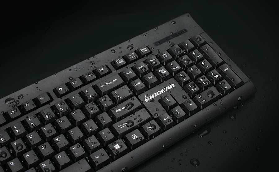 This duo fits perfectly in the home or office setting. Clumsy coffee spills over the keyboard will not hinder your productivity. The liquid will exit the keyboard through strategically placed drainage holes.
